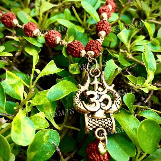 Gold Plated Rudraksha OM Shiva Trishool Necklace – Spiritual Protection & Strength